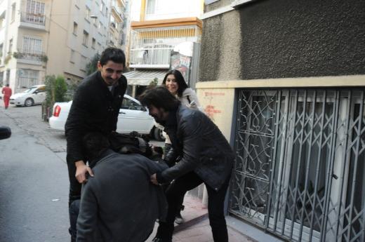 Ahmet Kural,gazetecinin yardımına koştu.Cihangir’de yürürken görülen Ahmet Kural ve sevgilisi Burcu Kıratlı’yı farkeden haberciler, ikilinin yanına giderek röportaj yapmak istedi. Ama soruları yanıtlarken bir yandan da yemek yiyecekleri mekana yürüyen çifti görüntülemeye çalışan kameraman, kaldırıma takılıp düştü.