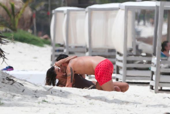 Ünlü isimler tatil için Meksika’nın son zamanlarda popülerliğini arttırarak turizm cenneti haline dönüşen sahillerinden biri olan Tulum’u tercih ediyor. Denize giren çiftin romantik halleri objektiflere takıldı.