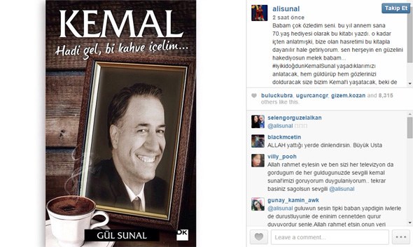 Kemal Sunal’ın oğlu Ali Sunal, instagram sayfasına “Kemal Hadi gel, bi kahve içelim” kitabının fotoğrafını yükledi ve altına şu notu düştü;