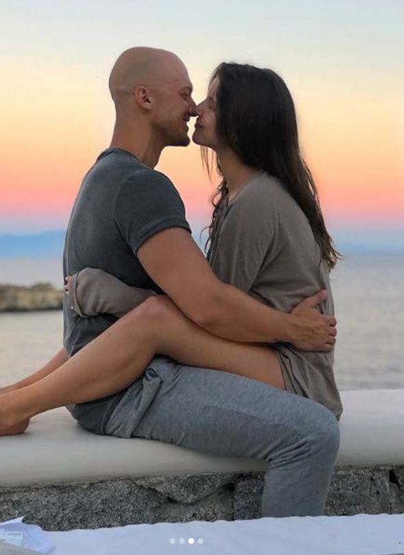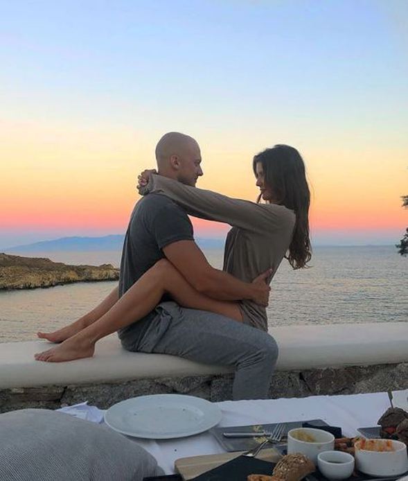 Amanda Cerny sevgilisiyle akşam yemeği yedikten sonra muhteşem Mykonos manzarası eşliğinde romantik pozlar verdi.