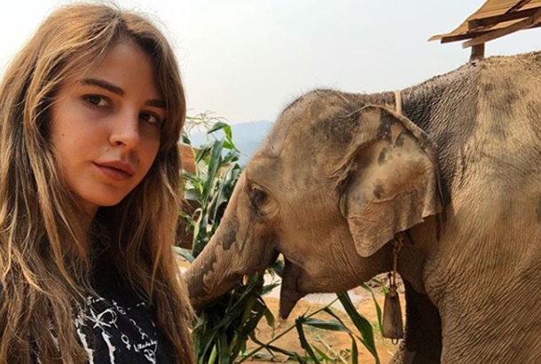 Chiangmai Elephant Sanctuary isimli doğal parka giden Aslışah Alkoçlar burada bir fille çektirdiği fotoğrafı annesinin sayfasından paylaştı.
