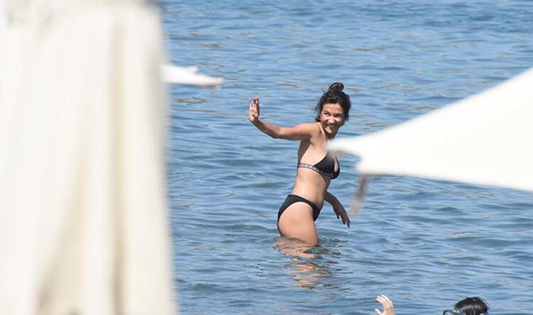 Bodrum Akyarlar’da tatil yapan güzel oyuncu siyah bikinisiyle halk plajında denize girip serinledi. Köpeğini de denize sokan Pusat , denizden çıktığında plajdaki insanlar tarafından gazetecilerin olduğuna dair uyarıldı.