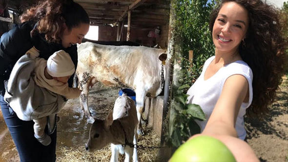 Azra Akın son olarak oğlu Demir ile yeni doğmuş bir buzağıyı ziyaret etti. Akın, fotoğrafı ‘Çiftlikte yaşam… İki anne!’ notuyla Instagram’da paylaştı.