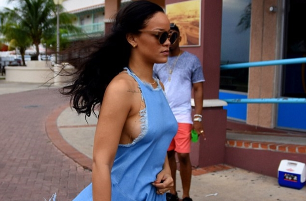 Rihanna, büyüleci güzelliklere ev sahipliği yapan Barbados’ta kameralara sütyensiz yakalandı. Daha öncede bir NBA maçına sütyen giymeden giden Rihanna, başka bir gün de New York’ta alışyeriş yaparkenken aynı görüntüleri vermişti.
