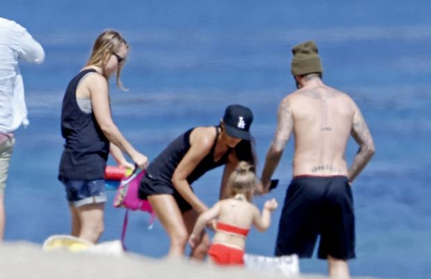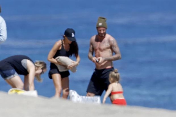 Beckham çiftinin sahil turu, denizde ve kumsalda oynayan minik kızları Harper’ın fotoğraflarını çekmekle geçti.