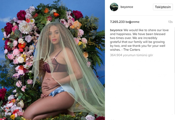 “Sevgimizi ve mutluluğumuzu sizinle paylaşmak istiyoruz. İki kez kutsanmışız. Ailemiz iki kişi daha büyüyeceği için inanılmaz derecede minnettarız ve iyi dilekleriniz için teşekkür ederiz. -The Carters”
