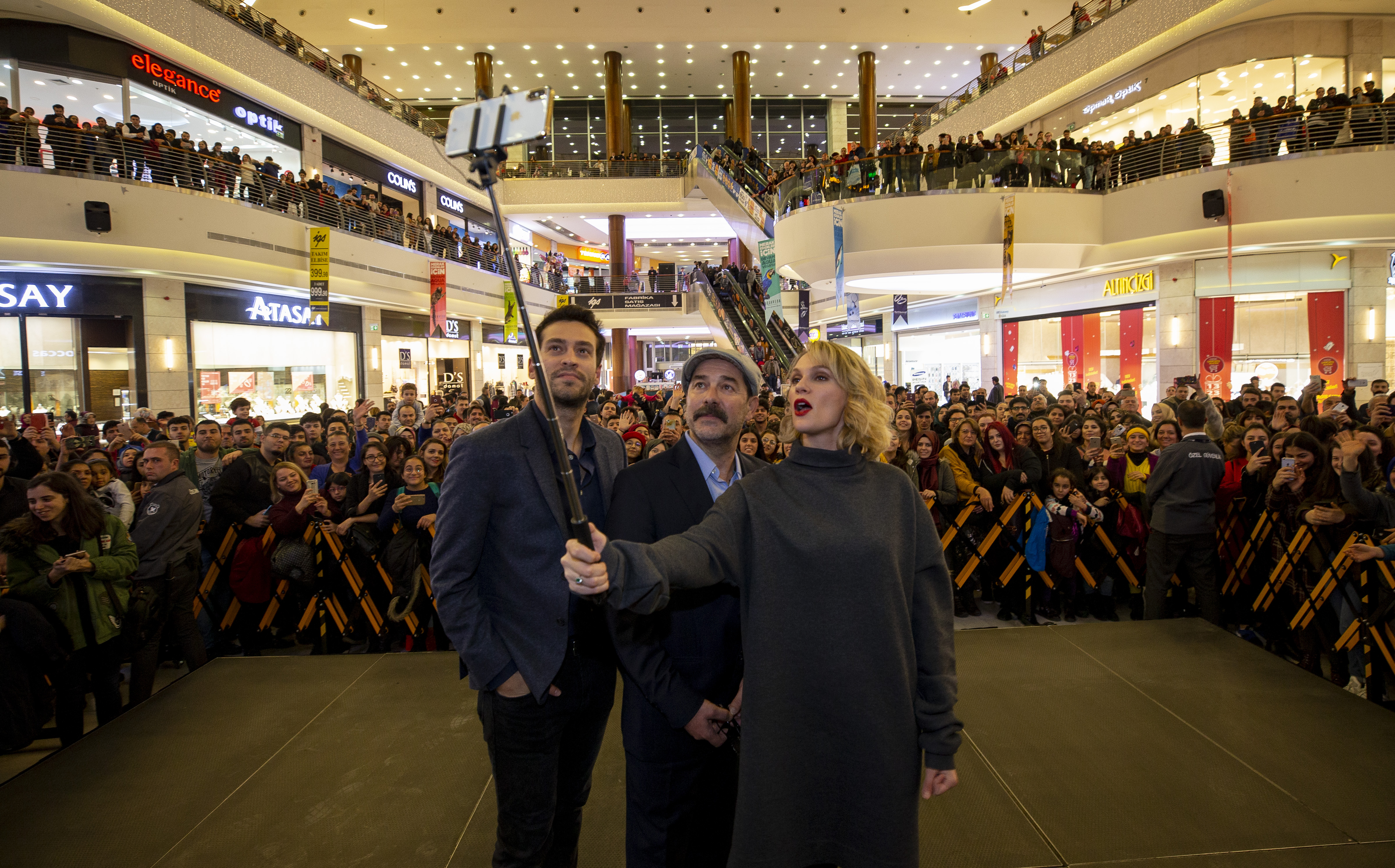 Bir AVM’de düzenlenen etkinlikte, “Bizim İçin Şampiyon” filminin başrol oyuncularından Ekin Koç, Farah Zeynep Abdullah ve Fikret Kuşkan sinemaseverlerle buluştu.