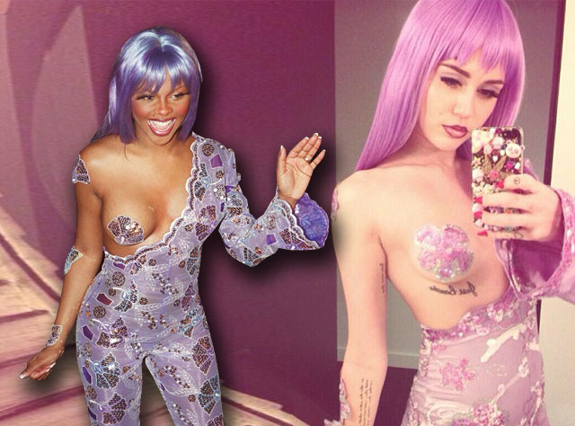 ABD’li rapçi Lil’ Kim’in 1999 Mtv Müzik Ödülleri töreninde giydiği kıyafetin aynısını giyen Cyrus, fotoğrafını Twitter üzerinden hayranları ile paylaştı.