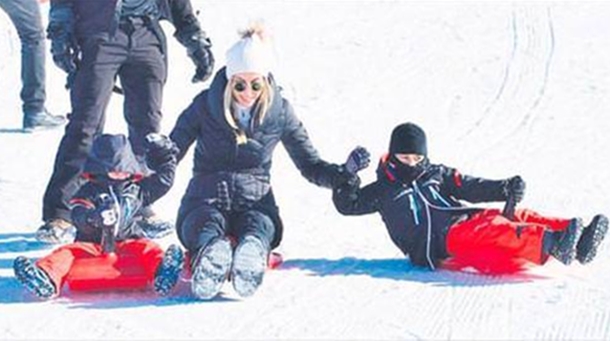 Çağla Şikel, hafta sonu tatilini çocuklarıyla birlikte kayak yaparak geçirdi.