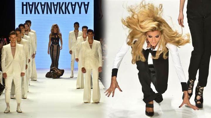 Akkaya’nın defilesinde podyuma çıkan Çağla Şikel, ayağı takılarak yere düştü. Şikel, defile sonunda seyirciyi selamlamak için podyuma çıkan Hakan Akkaya’nın yanında yer aldı.