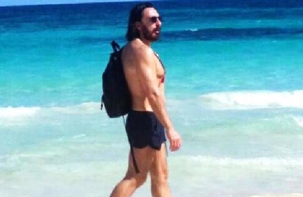 Mayosuyla plajda yürüyüş yapıp, beach barda içki içen işadamının rahat tavırları dikkatlerden kaçmadı.
