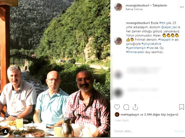 Instagram hesabından paylaşım yapan Cengiz Bozkurt, “Bizde #tbt çok. 25 yıllık arkadaşım, dostum Alper Taş ile her zaman olduğu gibiyiz, yan yanayız. Yolun yolumuzdur Alper. Fırtınalı denizin, Haçapit in asi çocuğuyla Çinçivakahve Çamlıhemşin Rize de. Oy Fırtınavadisi duy sesimizi..” notunu ekledi.