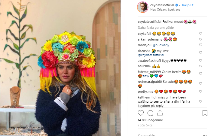 Ceyda Ateş’in çiçeklerle bezeli şapka takıp verdiği bu poz da oldukça ilgi çekiciydi.