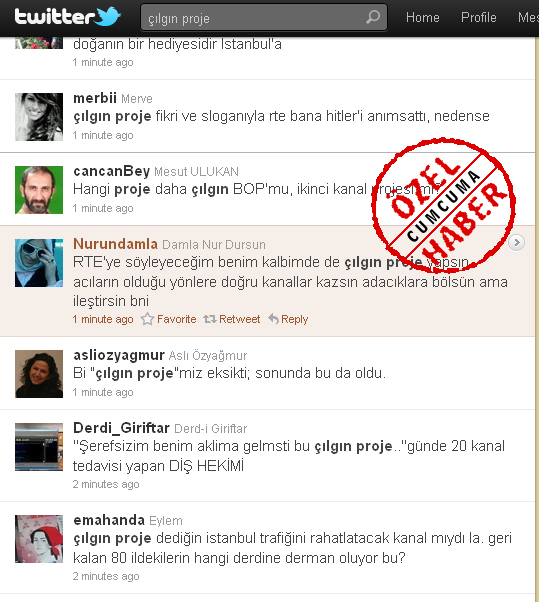 Doğaya ciddi bir müdahale yapılarak gerçekleştirilecek olan Çılgın Proje ‘nin maliyetinin 20 milyar doları geçeceği söylenirken, ünlüler de konuyla ilgili görüşlerini sosyal paylaşım sitelerinden duyuruyor…