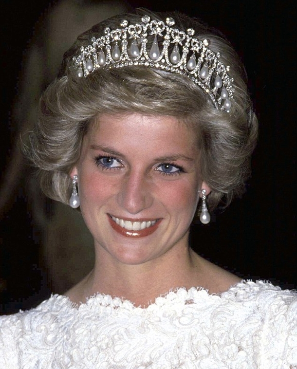 Elmas ve incilerle süslü bu tacı Kraliçe Elizabeth, Prenses Diana’ya düğün hediyesi olarak vermişti.