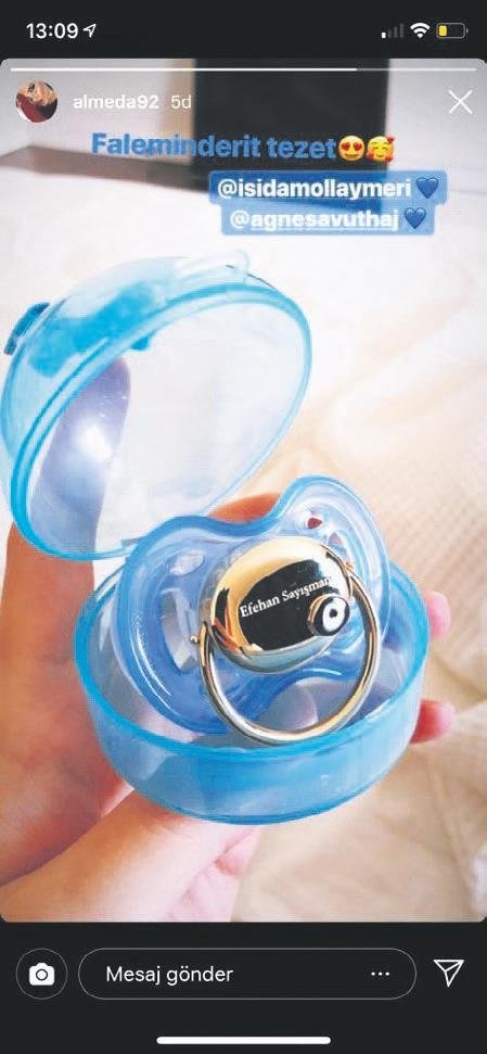 Doğumdan kısa süre sonra sünnet olan Efehan’a sünnet hediyesi olarak altın emzik geldi.