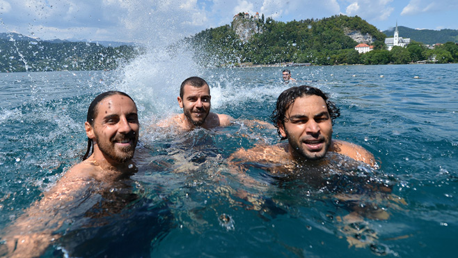 Öte yandan kamp için Slovenya’ya giden Sarı-kırmızılı futbolcular Slovenya’nın en güzel kasabalarından biri olan Bled’de antrenman sonrası göle girerek yorgunluk atıyor.