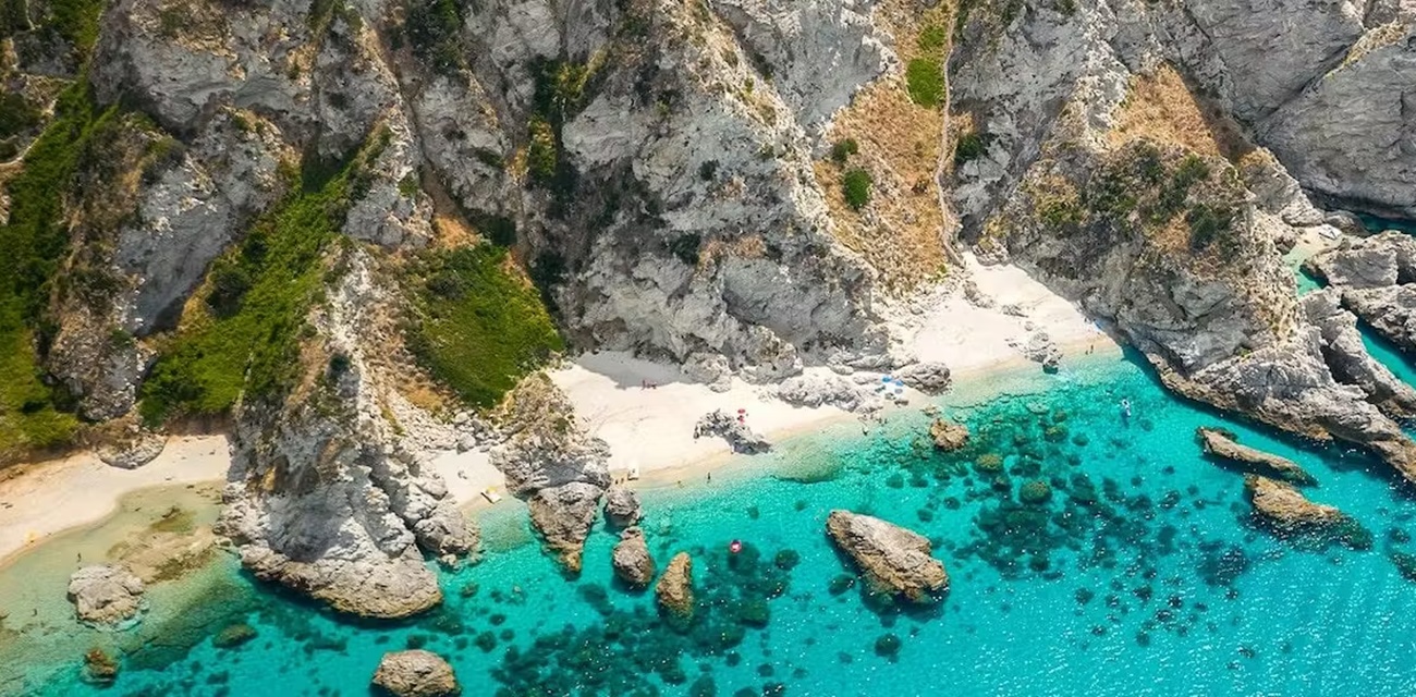 Calabria bölgesindeki Capo Vaticano, kayalık bir çıkıntının üzerinde yer alır ve bazıları ıssız ve sessiz olan çok sayıda koy ve plajıyla tanınır.