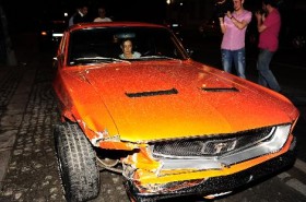 Arkadaşı Cemil Büyükdöğerli ve sevgilisi Özge Özpirinçci ile gittiği bir restorandan çıkan oyuncu, klasik Mustang’i ile kaygan zeminde aşırı hız yapınca kontrolünü kaybedip park halindeki bir otomobile çarptı.