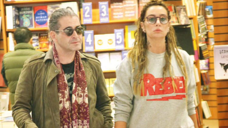 Zorlu Center’da görüntülenen çift, bol bol kitap alışverişi yaptı.