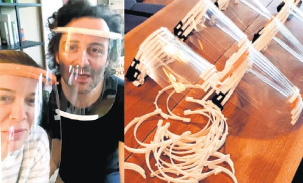 Begüm Kütük-Erdil Yaşaroğlu çifti, coronavirüs nedeniyle sağlık çalışanlarına destek olmak için evde siperlik üretmeye başladı.