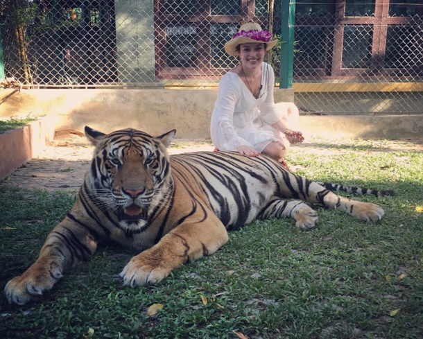 Bölgenin en ünlü hayvanat bahçelerinden birine giden Mola, burada meşhur kaplan ile poz vermekten geri kalmadı. Tatilinden fotoğrafları instagram sayfasına yükleyen 33 yaşındaki oyuuncu, takipçilerinden olumlu yorumlar aldı.