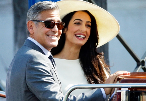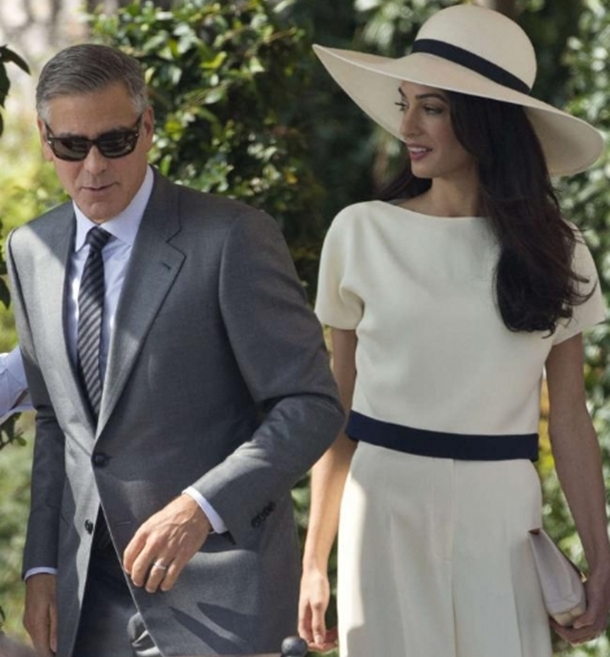 Nikah için verilen davet ise İtalyan romantizmini bir kez daha gözler önüne serdi. Davete, özel hazırlanmış bir deniz taksisiyle geçen çiçeği burnunda çift, taksilerine ‘Amore’ yani “aşk” yazdırdı. Üzerinde krem rengi bir pantolon takım ve aynı renk bir şapka ile saraya giren Alamuddin, bir hayli neşeliydi. Resmi nikah için binaya kanal taksisiyle geçen çift, kendilerini bekleyen hayranlarına el salladı.