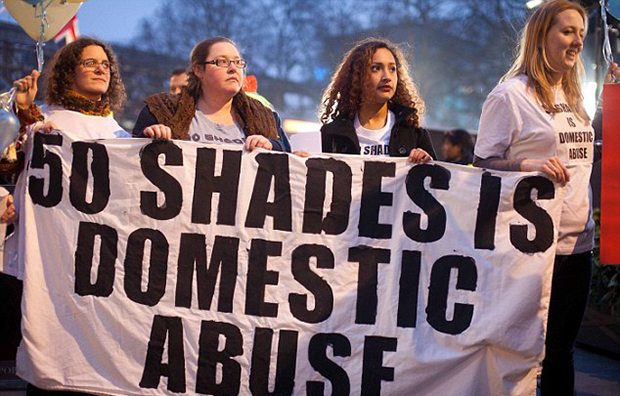 Aile içi şiddet ve cinsel istismara karşı olan bir grup kadın, gala öncesi kırmızı halının bulunduğu yerde bir protesto gösterisi düzenledi. Grup, “Bay Gri bir tecavüzcüdür”, “Aile içi şiddetin 50 tonu” yazılı pankartlar açtı.