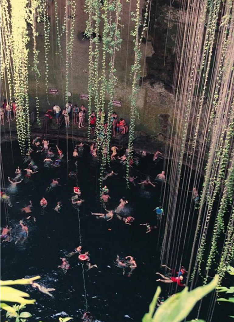 “Mayalı hükümdarların yüzdüğü bu çukur, 70 metre derinliğinde. İçinde siyah kedi balıkları var. Yükseklik korkuma rağmen dayanamayıp atladım, müthiş bir histi.”