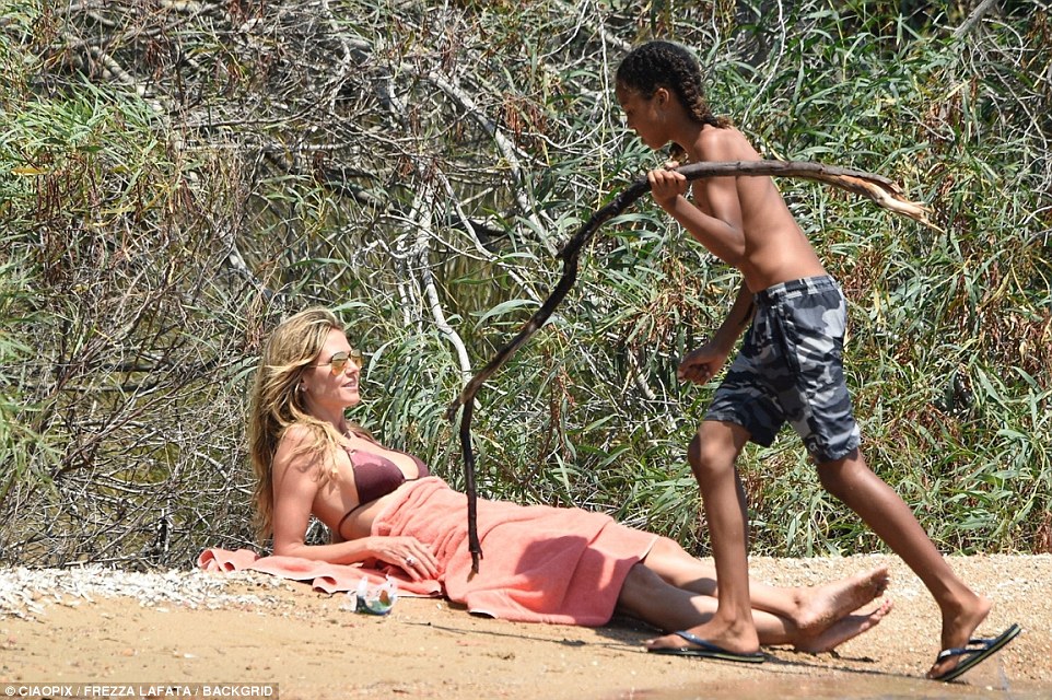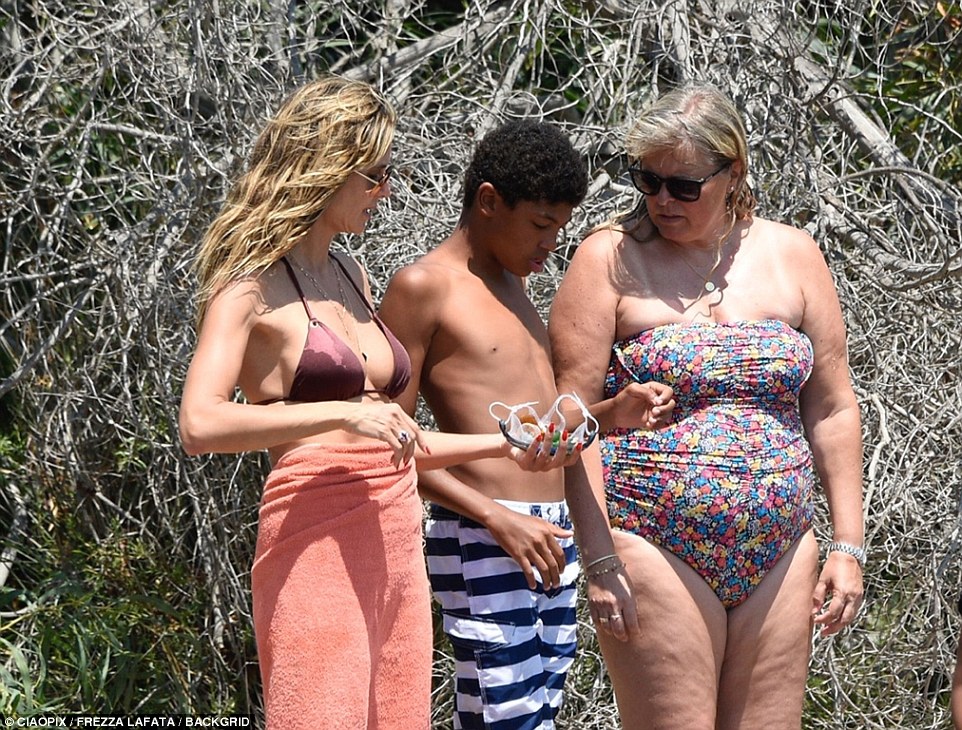Yıllara meydan okuyan Heidi Klum çocukları ve annesiyle denize girip güneşlendi.