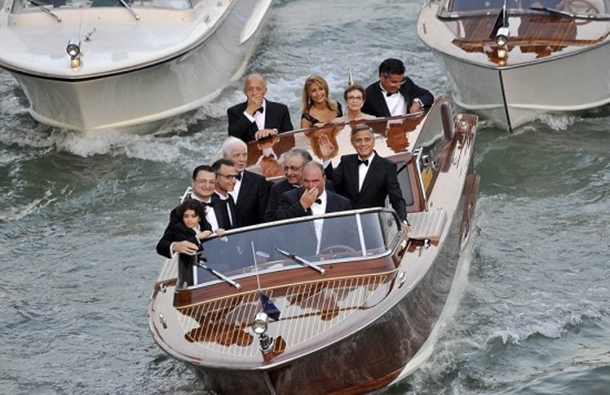 İtalya’nın Venedik kentinde dünya evine giren George Clooney ve Amal Alamuddin çiftini, yakın arkadaşları da yalnız bırakmadı.