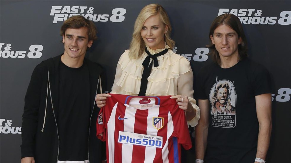Yıldız futbolcular, hem Vin Diesel hem de Charlize Theron’a isimlerinin yazılı olduğu Atletico Madrid formaları hediye etti.