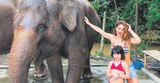 Bali‘ye gidip fillerle fotoğraf paylaşmadan olmadı tabiki… Oyuncu, kızı ve oğluyla filleri sevdi.