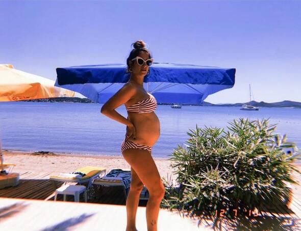 5 aylık hamile Hazal Kaya, fotoğrafın altına “Onlar bizi çekmeden ben paylaşayım dedim 😊Tanıştırayım Fikret Ali ” notunu düştü.