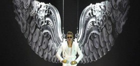 18 yaşındaki ünlü şarkıcı, sahneye metalik dev bir kanat’a bağlı olarak giriş yaptı.