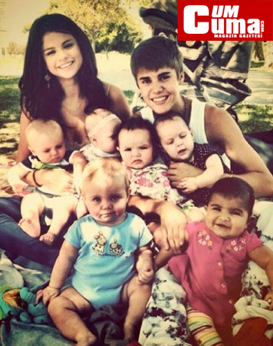 Justin Bieber internet ortamında sevgilisi Selena Gomez ve 6 bebek ile çekilmiş fotoğraflarını yayınladı.