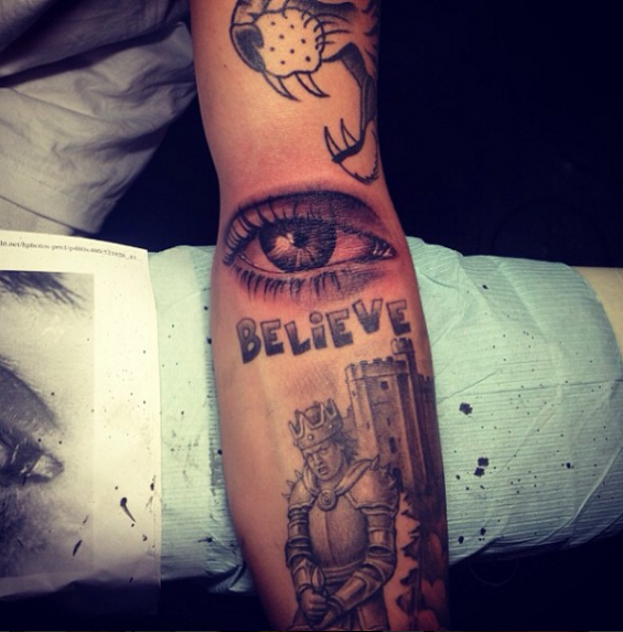Daha önce yaptırdığı ilginç dövmelerle gündeme gelen 19 yaşındaki pop yıldızı, sol koluna göz dövmesi yaptırdı.