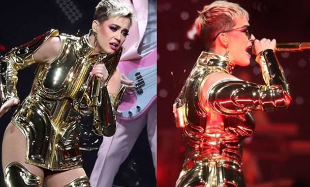 Şarkıları ve sahne şovlarıyla kendini izlemeye gelenlere unutulmaz bir gece yaşatan 33 yaşındaki Katy Perry, kıyafetiyle de ilgi odağı olmayı başardı.