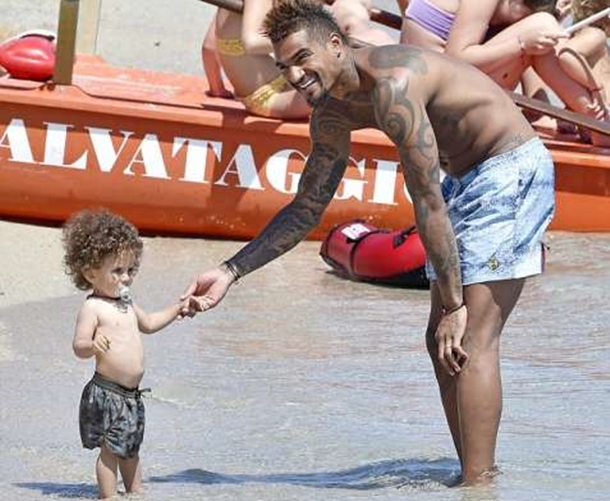 Adı Galatasaray ile anılan yıldız futbolcu Kevin Prince Boateng, yaz tatilini İtalya plajlarında geçiriyor.