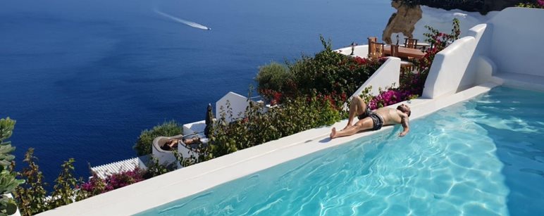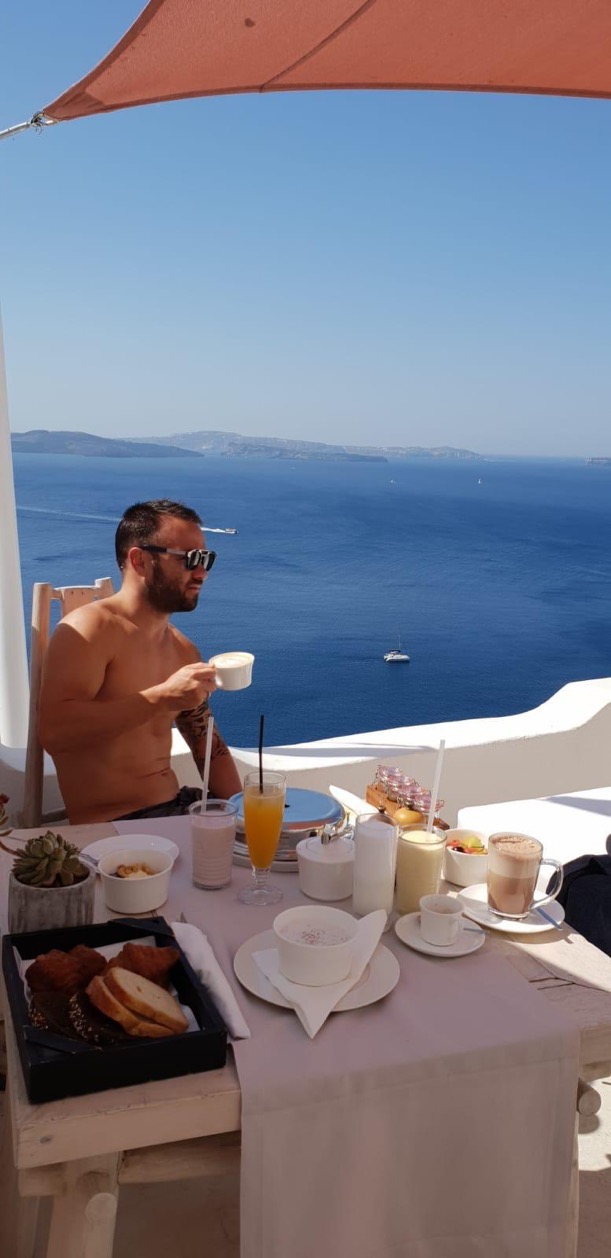 Santorini’de muhteşem manzaranın tadını çıkartan futbolcu, gün boyu bol bol yüzmeyi ihmal etmedi.