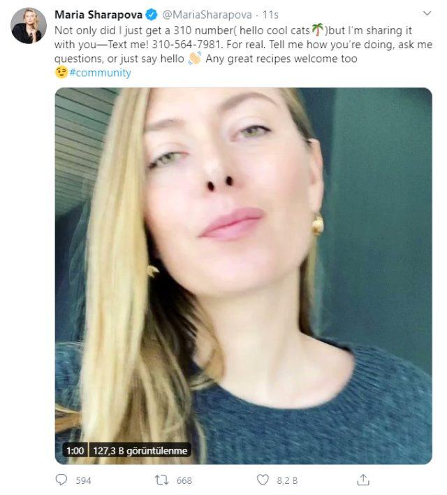 Numarasını yazan Sharapova,”Geçen hafta yaptığım sohbetleri çok sevdim ve keşke daha fazla kişiyle sohbet edebilseydim. Çünkü hepimiz evde kendimizi hapsediyoruz. Bu yüzden evde geçirdiğiniz vakitte neler yaptığınızı bana anlatmanızı istiyorum. Size bir telefon numarası bırakıyorum. Bana doğrudan bu numara üstünden ulaşabilirsiniz. Size cevap vereceğim” ifadelerini kullandı.