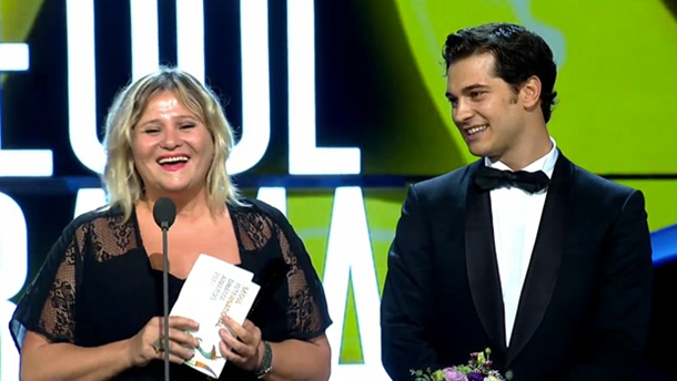 En İyi Dizi dalında, 2.lik ödülü olan Gümüş Ödül’e layık görülen dizinin ödülünü Çağatay Ulusoy ve Ece Yörenç birlikte aldı. Ulusoy’un Korece “Dost ve kardeş ülke Kore, merhaba. Hepinizi seviyorum, çok teşekkür ederim.” sözleri büyük alkış topladı. Konuşmasına İngilizce devam eden Ulusoy’un ardından söz alan Ece Yörenç de tüm Medcezir ekibine ve Ay Yapım’a teşekkür etti.