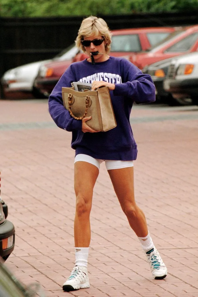 Prenses Diana ise bu kolej sweatshirt’ünü 1996 yılında Chicago Üniversitesi’ni ziyaret ettikten kısa bir süre sonra giymiş ve Londra sokaklarında bu kombinle görüntülenmişti. Diana’nın rahat kıyafet seçimleri, yıllar sonra bile moda dünyasında ilham kaynağı olmaya devam ediyor.