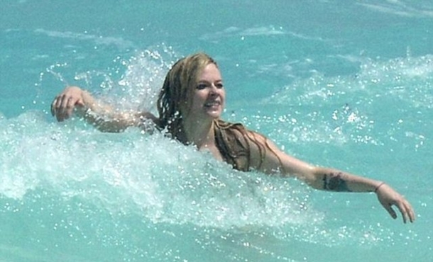 Denizin ve güneşin tadını çıkaran Lavigne, dalgalarla oynarken aniden bikinisinin alt kısmının kaydığını hissetti. Eliyle bikinisini tutan şarkıcı böylece bir deniz kazasına uğramaktan son anda kurtuldu.