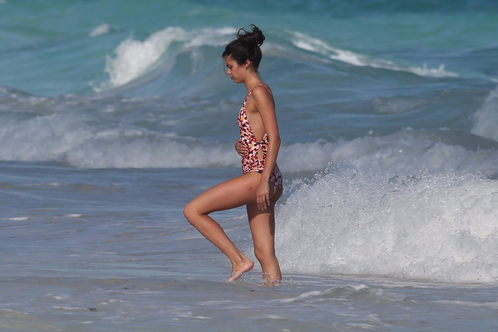 Tek parça renkli mayosuyla önceki gün Meksika sahillerinde görüntülenen Sara Sampaio, denizin ve yakıcı güneşin tadını çıkardı. Yoğun iş temposuna arar vererek Meksika’ya gelen genç modelin bu tatile de yalnız çıkması dikkatlerden kaçmadı.