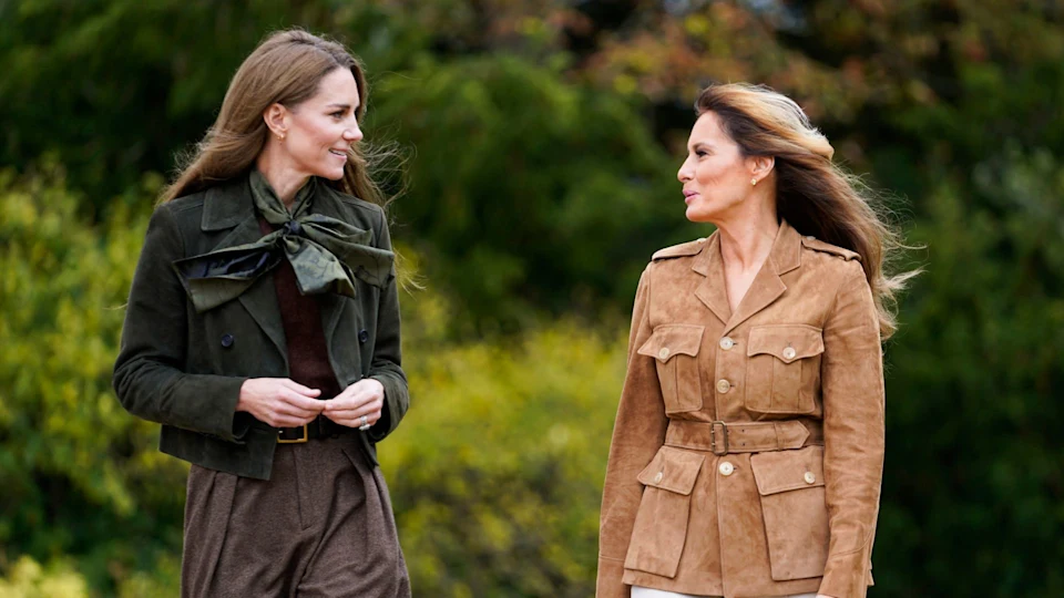 Kate Middleton, kahverengi pileli eteği ve zeytin yeşili ceketiyle klasik kraliyet zarafetini yansıttı. Melania Trump ise kemerle vurgulanan bej ceket, açık tonlu pantolon ve düz ayakkabılarla daha sade ama modern bir görünüm tercih etti. İki kadının stili, farklı karakterlerini yansıtırken etkinliğe şıklık kattı.