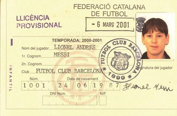 Barcelona, resmi Twitter adresinden Messi’nin 2001’de çıkan ilk lisansını takipçileriyle paylaştı.
