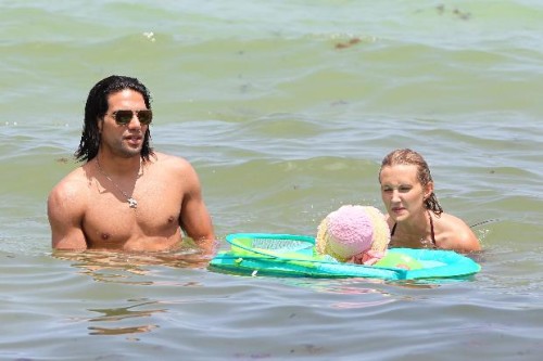 Monaco kulübünde top koşturan Radamel Falcao, plajda kızını denize alıştırırken objektiflere takıldı.