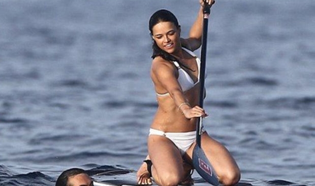 Saint-Tropez açıklarındaki teknelerinde denizin ve güneşin tadını çıkaran Michelle Rodriguez ve arkadaşları su sporları yapmayı da ihmal etmiyor. Sörfe olan yatkınlığı ile bilinen 37 yaşındaki güzel oyuncu, bu kez paddle-boarding yaptı.