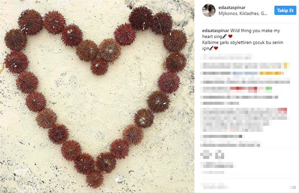 Taşpınar, bu kez deniz kestanelerinden yaptığı bir kalple takipçilerinin karşısına çıktı.